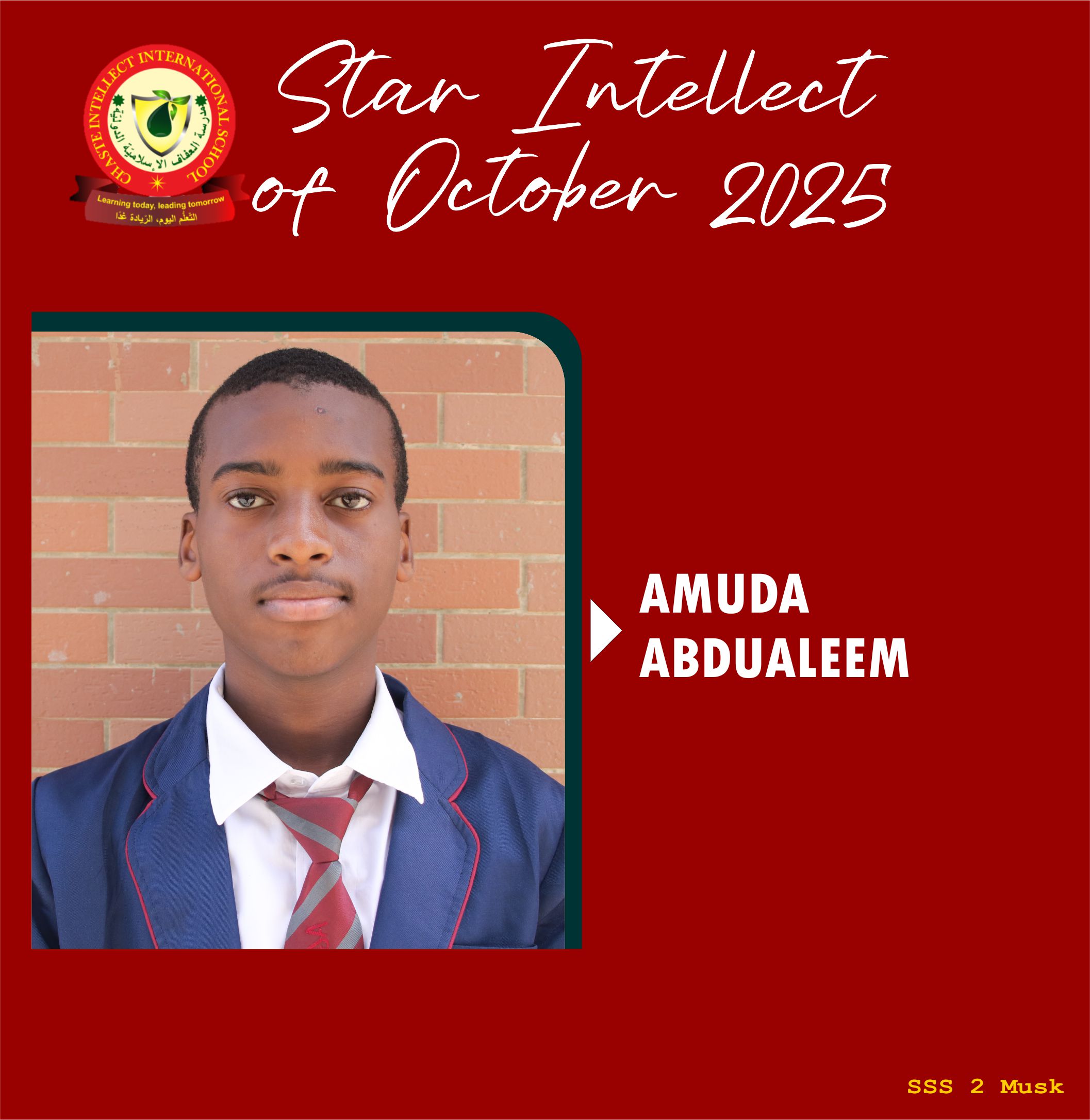 With immense pleasure and delight, I present the dazzling and glittering diamond in SS2 Musk: Amuda Abdualeem as the intellect of the month for October. He sets an exemplary character in learning and behavior. His intentionality and enthusiasm are worthy of emulation. Not only is he organized, but he is also outstandingly neat, respectful, and keen to follow instructions. He is a perfect example of an intellect who is chaste. Whenever Amuda errs and is corrected, his countenance shows that he is ready for correction; he sees criticism as a stepping stone toward success. In all, it is a joy to have such a gem in my class, and I pray that Allah continues to guard him and keep him reliable, dependable, and trustworthy. Amin.4 StarsSS 2 Musk